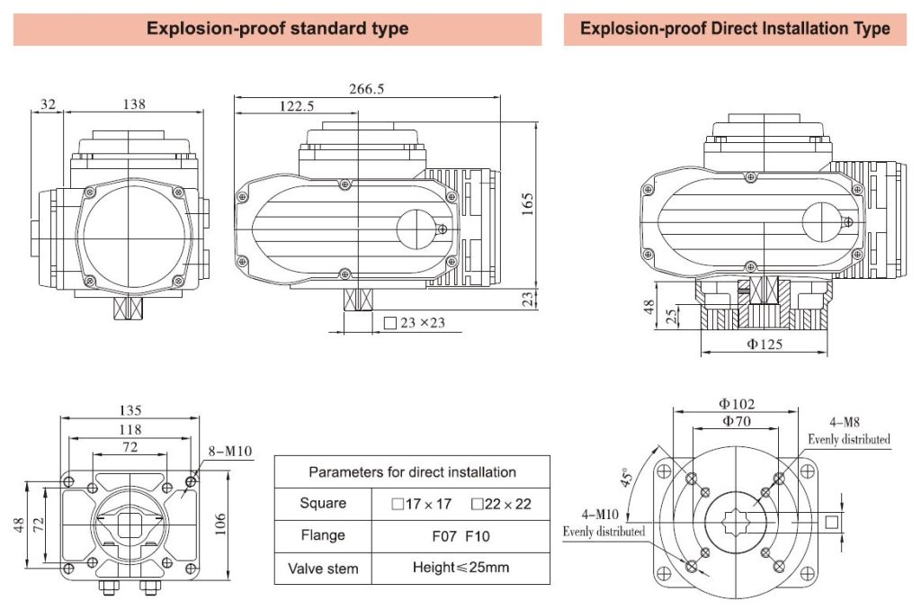 | Electric Interface | 2-M20×1.5explosion-proof plug,clients should install corresponding explosion-proof cableconnector when using according to the cable selected. | |||